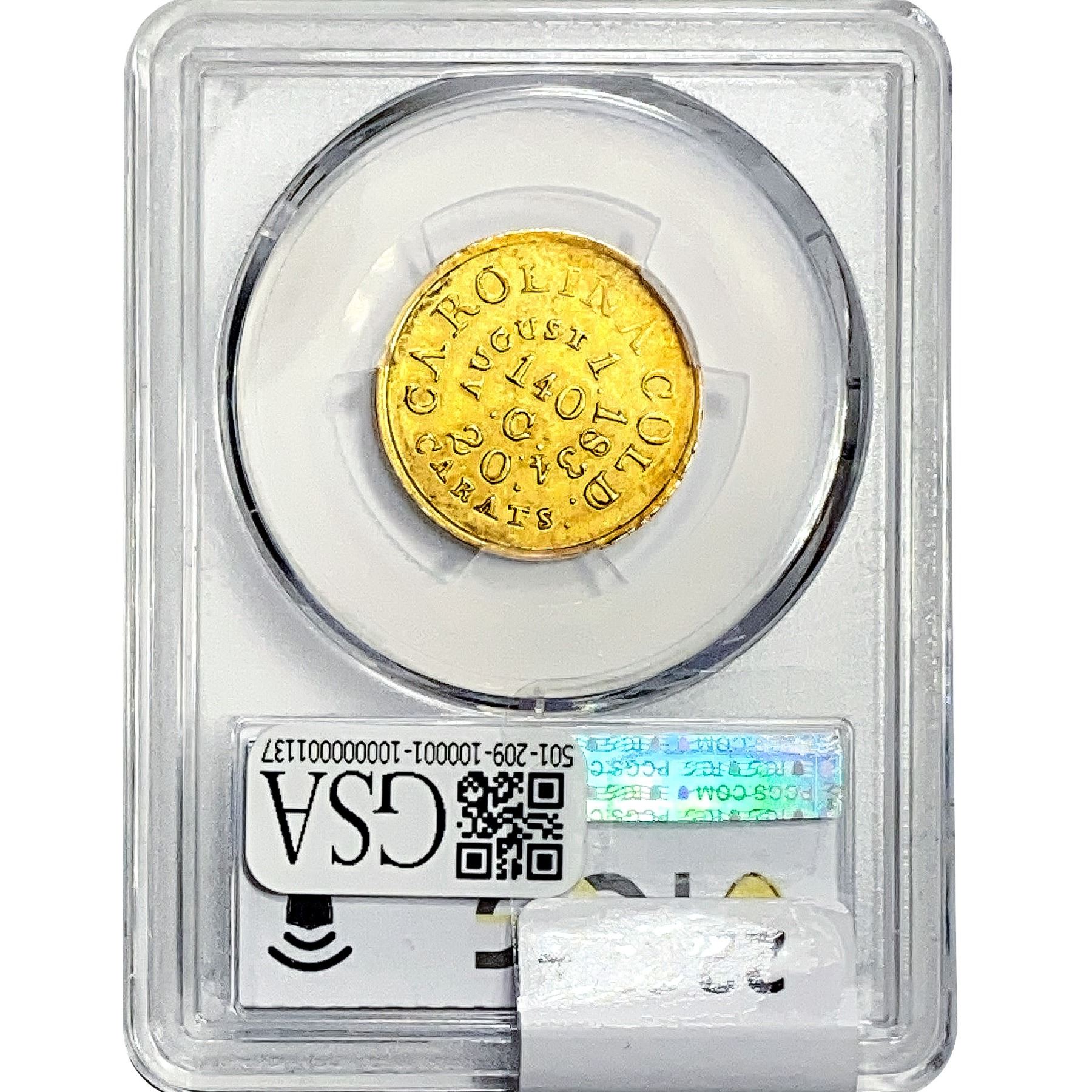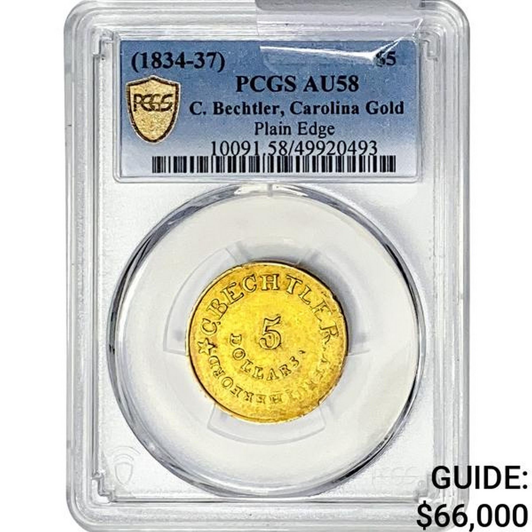 1834-37 $5 C.Bechtler Carolina G PCGS AU58 Plain Edge