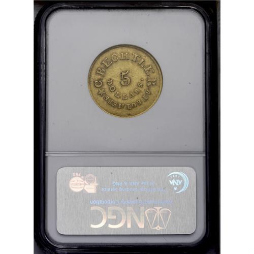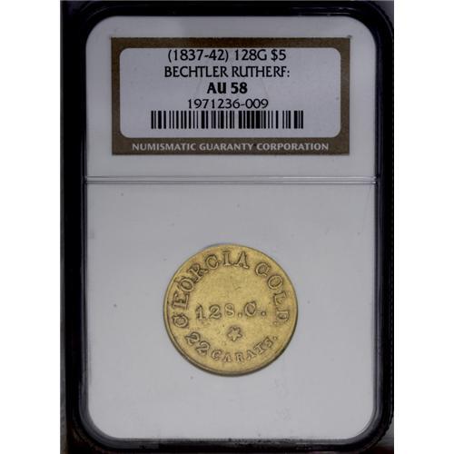 (1834-37) $5 C.Bechtler Five Dollar, RUTHERF: AU58 NGC