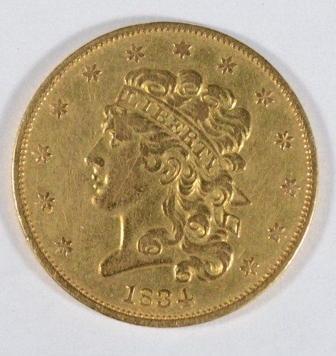 1834 $5.00 GOLD RARE CROSSLET 4 VARIETY, NICE, XF, TRY TO FIND THIS!