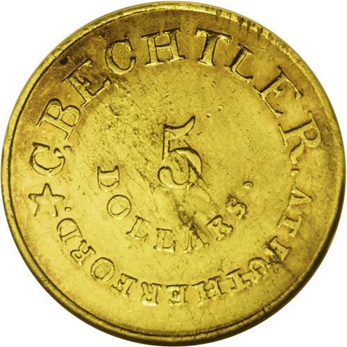 1834 $5 C.Bechtler Five Dollar, 140 G., RUTHERFORD, Pl