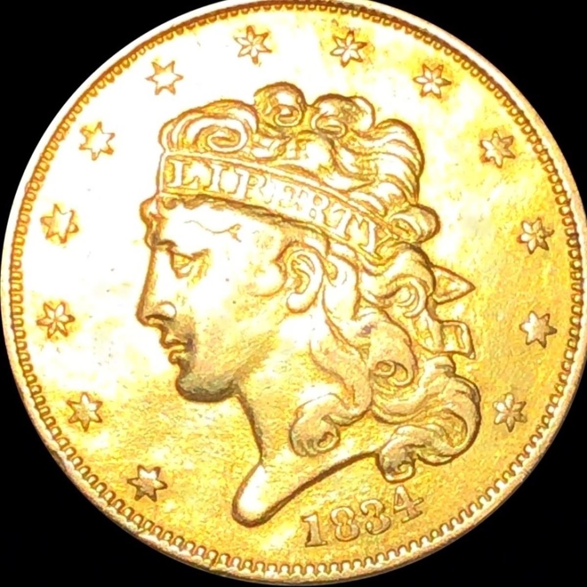 1834 $5 Gold Half Eagle ABOUT UNCIRCULATED
