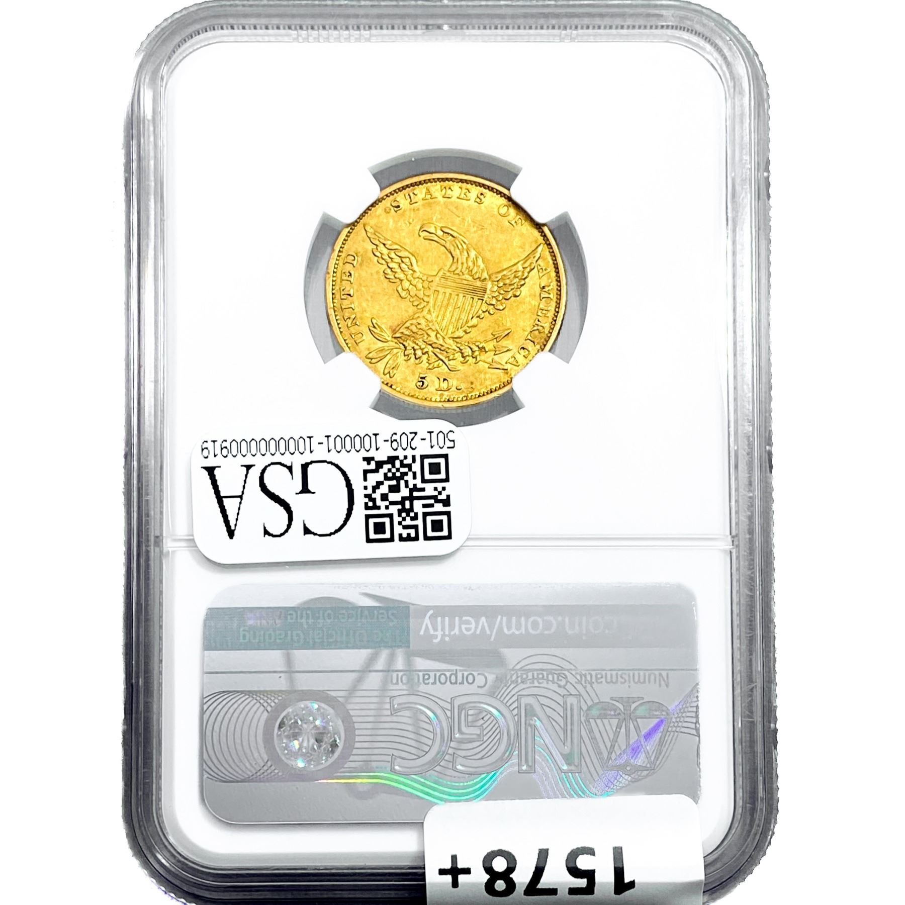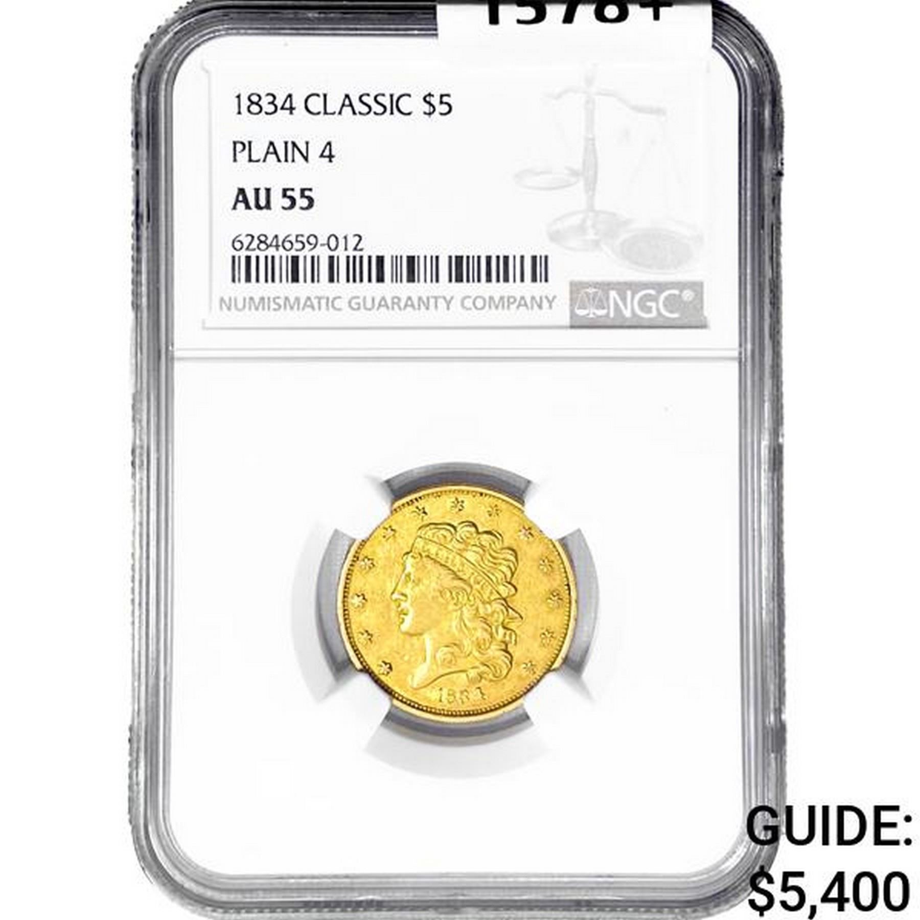 1834 $5 Gold Half Eagle NGC AU55 Plain 4