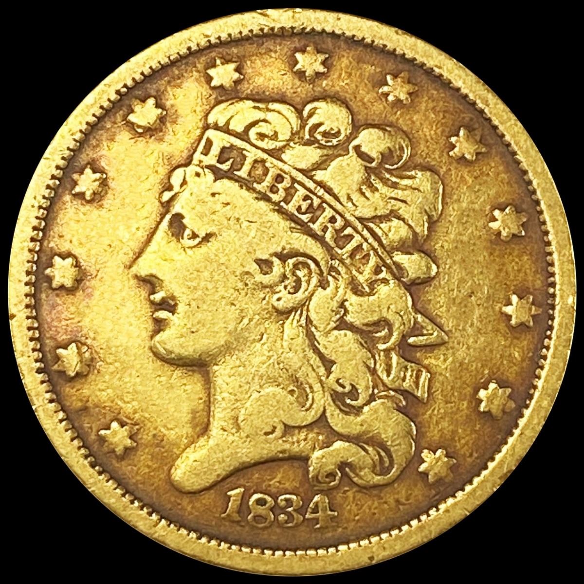 1834 $5 Gold Half Eagle NICELY CIRCULATED