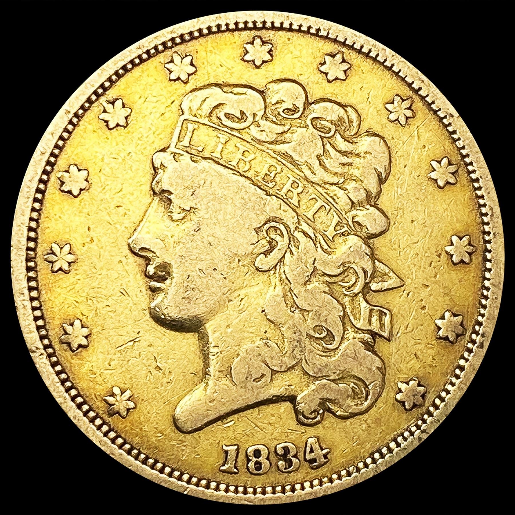 1834 $5 Gold Half Eagle NICELY CIRCULATED