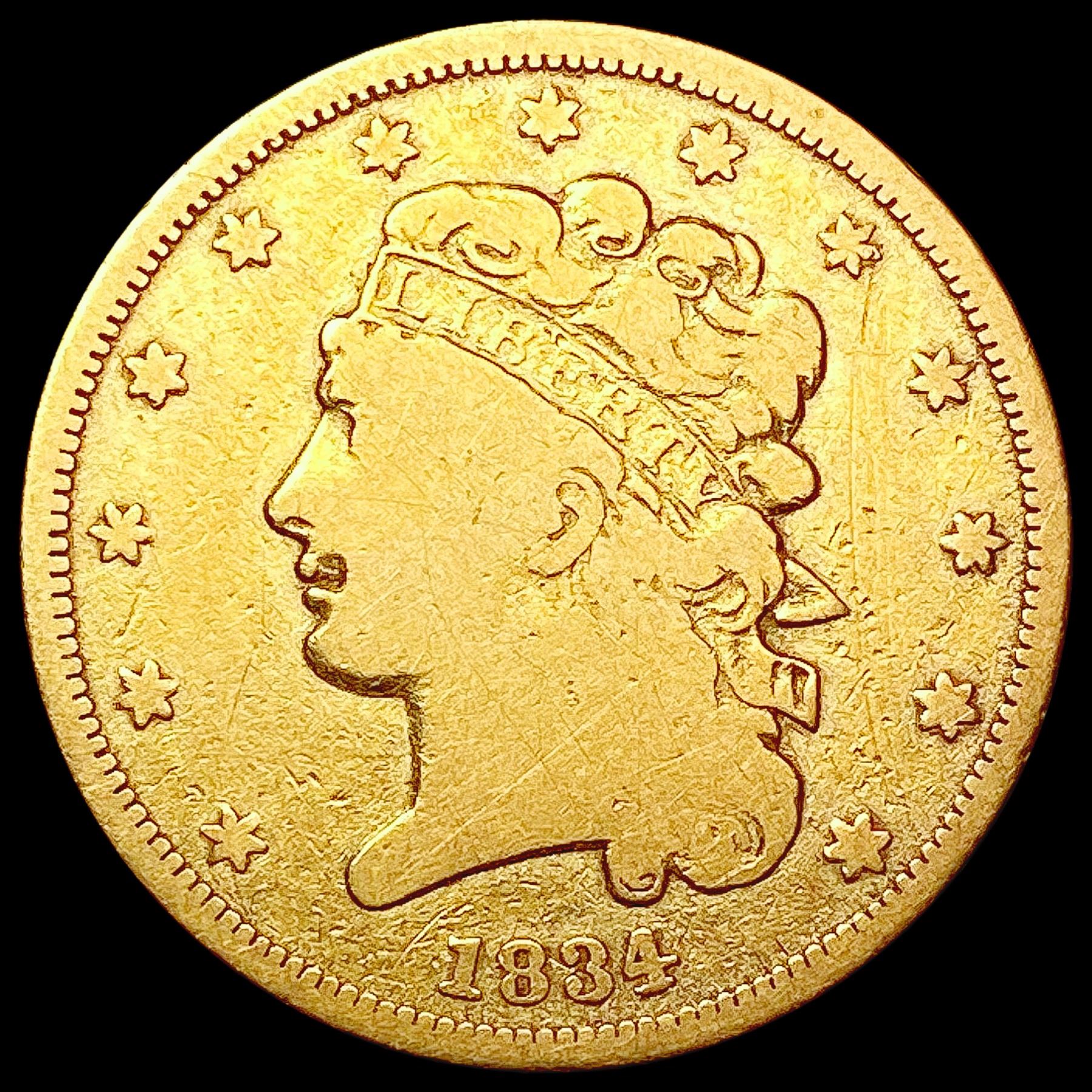1834 $5 Gold Half Eagle NICELY CIRCULATED