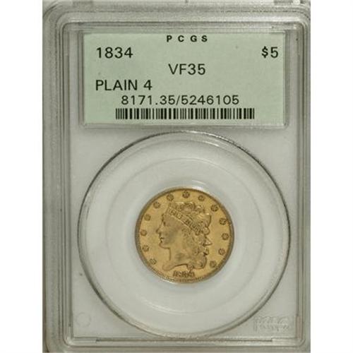 1834 $5 Plain 4 VF35 PCGS. PCGS Population (65/812