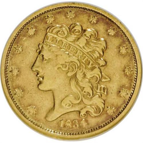 <B>1834 $5 Plain 4 XF45 NGC.</B></I> NGC Census: (179/1127). PCGS Population (170/525). Mintage: 657,460. Numismedia Wsl. Price for NGC/PCGS coin in XF45: $982. (#8171)<BR><BR><B>Coin Engraver:</B> William Kneass<BR><BR><b>Shipping:</b> Coins & Currency (<a target="_blank" href="http://www.heritageauctions.com/common/shipping.php">view shipping information</a>\)