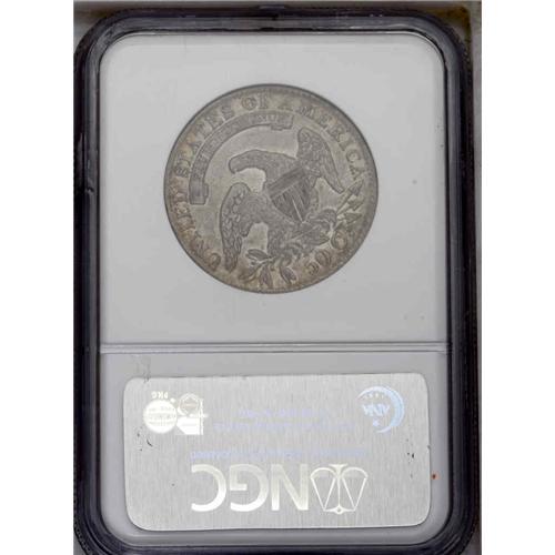 <B>1834<50C> Large Date, Large Letters AU53 NGC.</B></I> O-103, R.2. The 1 in the date is noticeably higher than the 8, and the eagle's tail feather crosses the leaf stems. Liberty's profile is distinctly doubled. A very attractive coin with russet-golden peripheral toning and just a hint of wear. The surfaces are abrasion-free. Envelope Included.