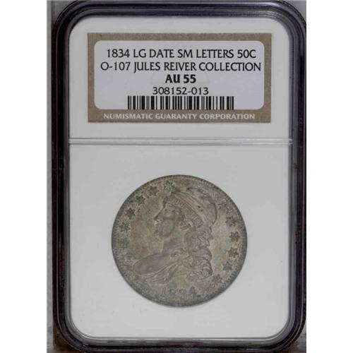 1834 50C Large Date, Small Letters AU55 NGC. O-107, R. 1834[50C] Large Date, Small Letters AU55 NGC.