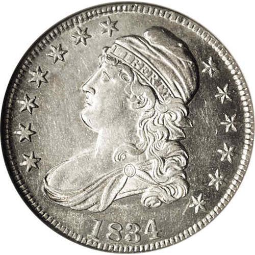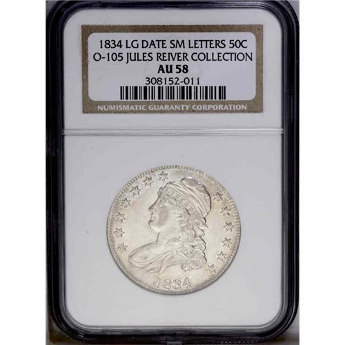 1834 50C Large Date, Small Letters AU58 NGC. O-105, R. 1834[50C] Large Date, Small Letters AU58 NGC.