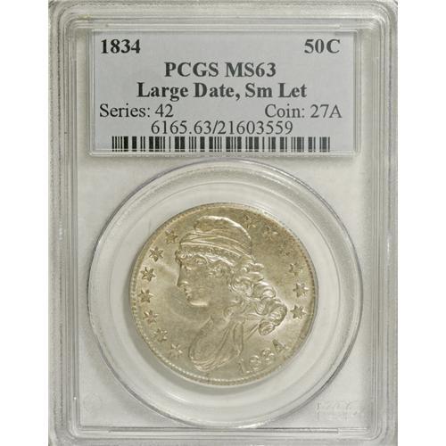 1834 50C Large Date, Small Letters MS63 PCGS. O-106, R