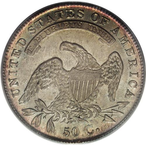 <B>1834 50C Large Date, Small Letters MS64 PCGS.</B></I> O-104, R.2. Golden-brown, aquamarine, and dove-gray toning graces this satiny near-Gem. The strike is sharp aside from the stars, which have indistinct centers. The reverse is particularly free from marks. Population: 27 in 64, 13 finer (11/06).<BR><BR><b>Shipping:</b> Coin/Currency (<a target="_blank" href="http://www.heritageauctions.com/common/shipping.php">view shipping information</a>)