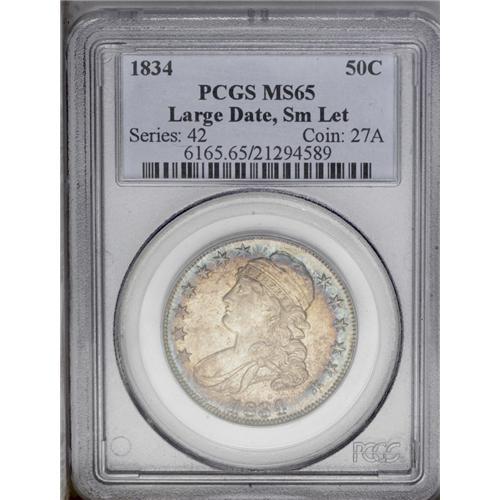 1834 50C Large Date, Small Letters MS65 PCGS. O-105, R 1834[50C] Large Date, Small Letters MS65 PCGS