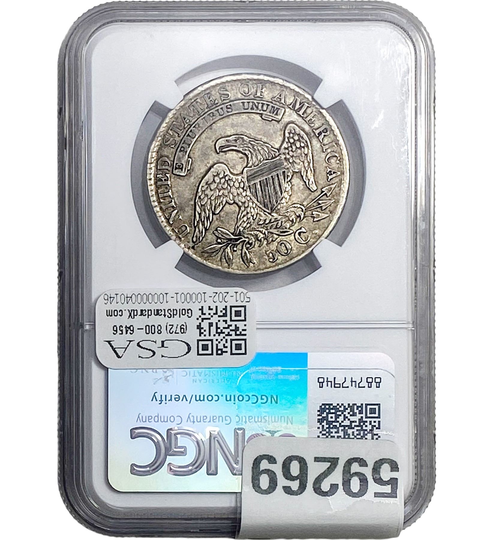 e. Coins sold referencing a third-party grading service are sold “AS IS” without any express or implied warranty, except for a guarantee by GSA that they are genuine. Removal or alteration of the holder, voids all of Bidder’s claims concerning that Product. Certain warranties may be available from the grading services and Bidders are referred to them for further details: Numismatic Guaranty Corporation (NGC), PO Box 4776, Sarasota, FL 34230, www.ngccoin.com/services/writtenguarantee.asp; Professional Coin Grading Services (PCGS), PO Box 9458, Newport Beach, CA 92658, www.pcgs.com/guarantee.html; ANACS, 6555 S. Kenton St., Ste. 303, Englewood, CO 80111; and Independent Coin Grading Co. (ICG), 7901 East Bellview, Ave., Suite 50, Englewood, CO 80111.