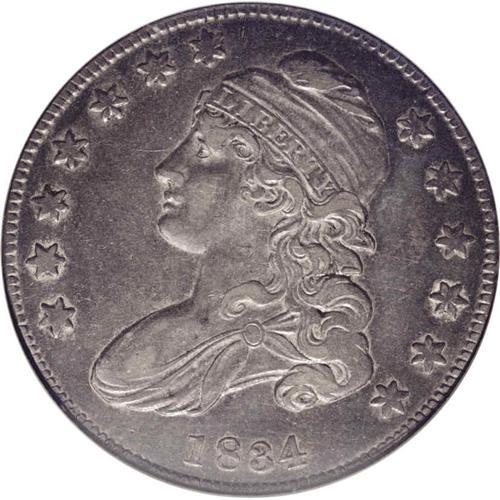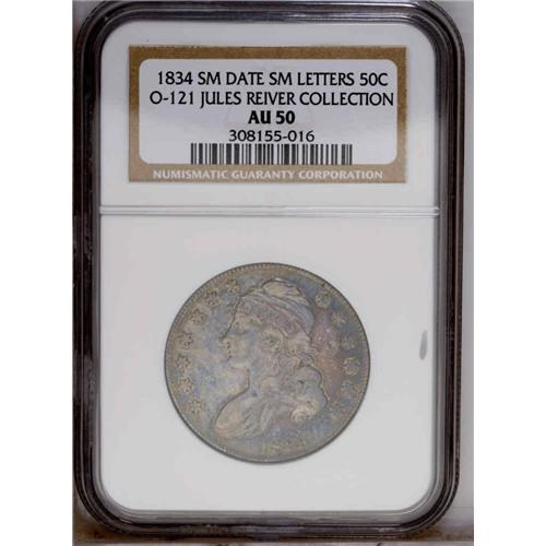 1834 50C Small Date, Small Letters AU50 NGC. O-121, R. 1834[50C] Small Date, Small Letters AU50 NGC.