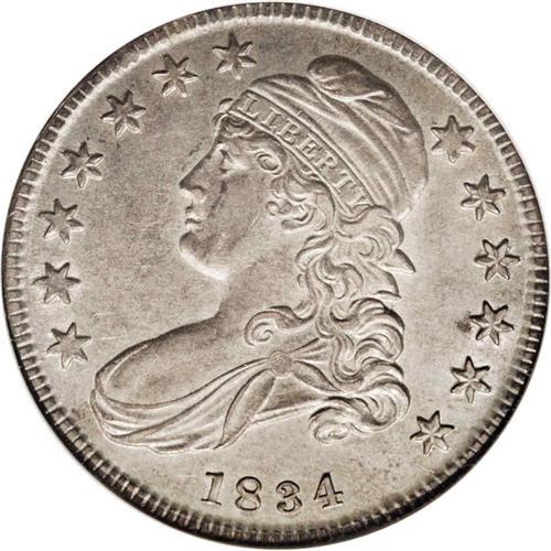 1834 50C Small Date, Small Letters AU58 NGC. O-110, R. 1834[50C] Small Date, Small Letters AU58 NGC.
