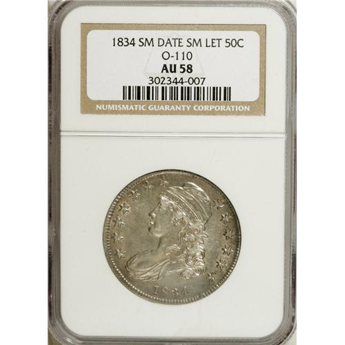 1834 50C Small Date, Small Letters AU58 NGC. O-110, R.