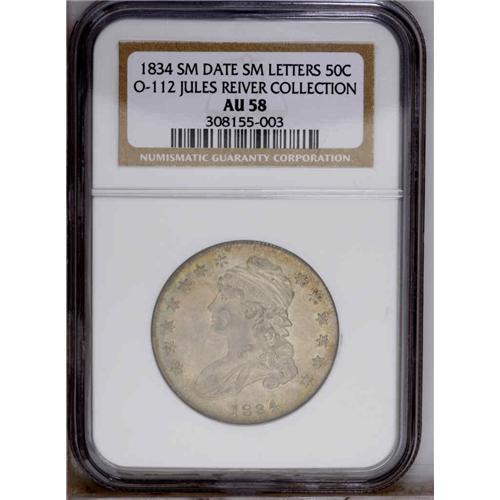 1834 50C Small Date, Small Letters AU58 NGC. O-112, R. 1834[50C] Small Date, Small Letters AU58 NGC.