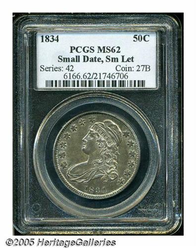 1834 50C Small Date, Small Letters MS62 PCGS. O-1