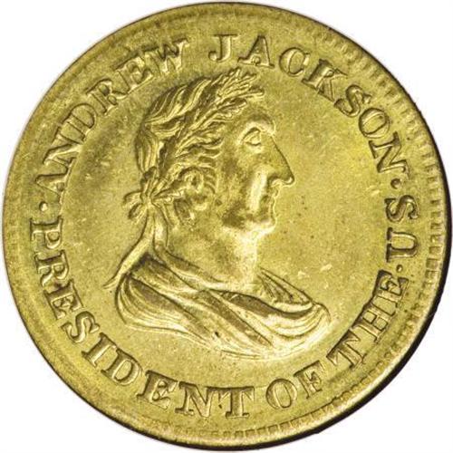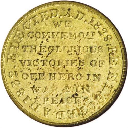 <B>(1834) Andrew Jackson MS63, HT-6, NGC.</B></I> Brass. Low-4, R.2. The canary-gold surfaces exude satin luster and are essentially devoid of contact. The Roman-style portrait of Jackson is well struck, and a few scattered reverse flecks are of little concern. The legends refer indirectly to Jackson's celebrated victory over the British at the 1814 Battle of New Orleans.<BR><I>Ex: F.C.C. Boyd estate; John J. Ford, Jr. Collection, Part 4 (Stack's, 6/04), lot 6.<BR>From The Madison Collection.</B></I><BR><BR><b>Shipping:</b> Coins & Currency (<a target="_blank" href="http://www.heritageauctions.com/common/shipping.php">view shipping information</a>)