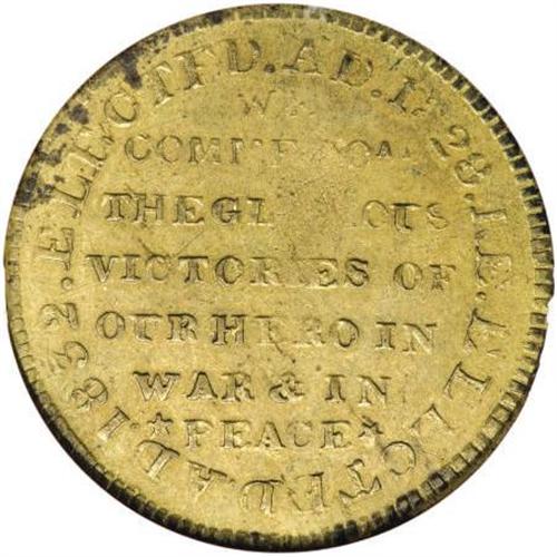 <B>(1834) Andrew Jackson President, HT-5, AU55 NGC.</B></I> Brass. Low-3, DeWitt-1834-29, R.3. Pro-Jackson tokens, such as the present piece, are far scarcer than the satirical anti-Jackson tokens that frequent the 1837 and later political entries in the Hard Times series. This partly lustrous olive-gold example shows slight wear on Jackson's head and collar. A few letters on the reverse legend are incompletely brought up, as always for this variety.<BR><I>From The Madison Collection.</B></I><BR><BR><b>Shipping:</b> Coins & Currency (<a target="_blank" href="http://www.heritageauctions.com/common/shipping.php">view shipping information</a>)