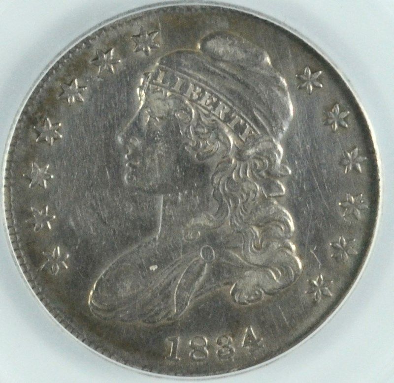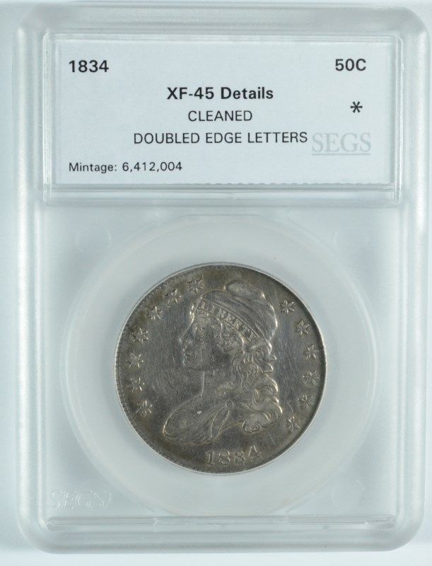1834 BUST HALF DOLLAR,SEGS, XF-45 RARE DOUBLED EDGE LETTERS DOUBLED DIE cleaned