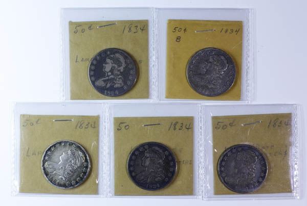 1834 Bust Half Dollars, 5 pieces. Fine - EF.