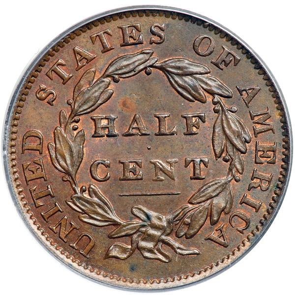 1834 C-1 R1. PCGS graded MS-63 Brown. Lustrous light brown with splashes of darker olive toning before the neck and above star 11. Traces of faded mint red show on both sides. Sharply struck EDS, Manley state 1.0, before the dies clashed. Our grade is MS60. The attribution is noted on the PCGS label. PCGS population 1; the only example graded at PCGS for the variety.