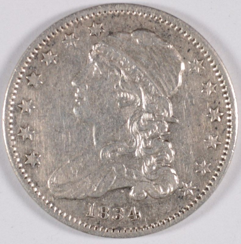 1834 CAPPED BUST QUARTER, AU SMALL SCRATCH REV.