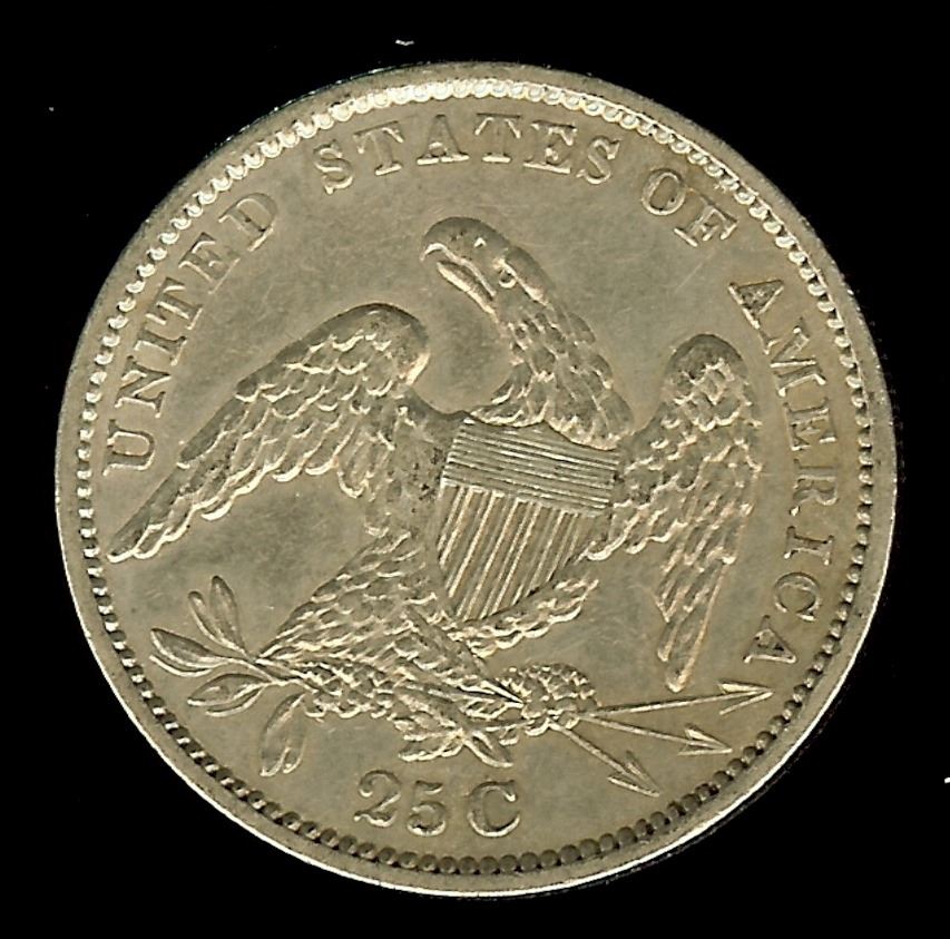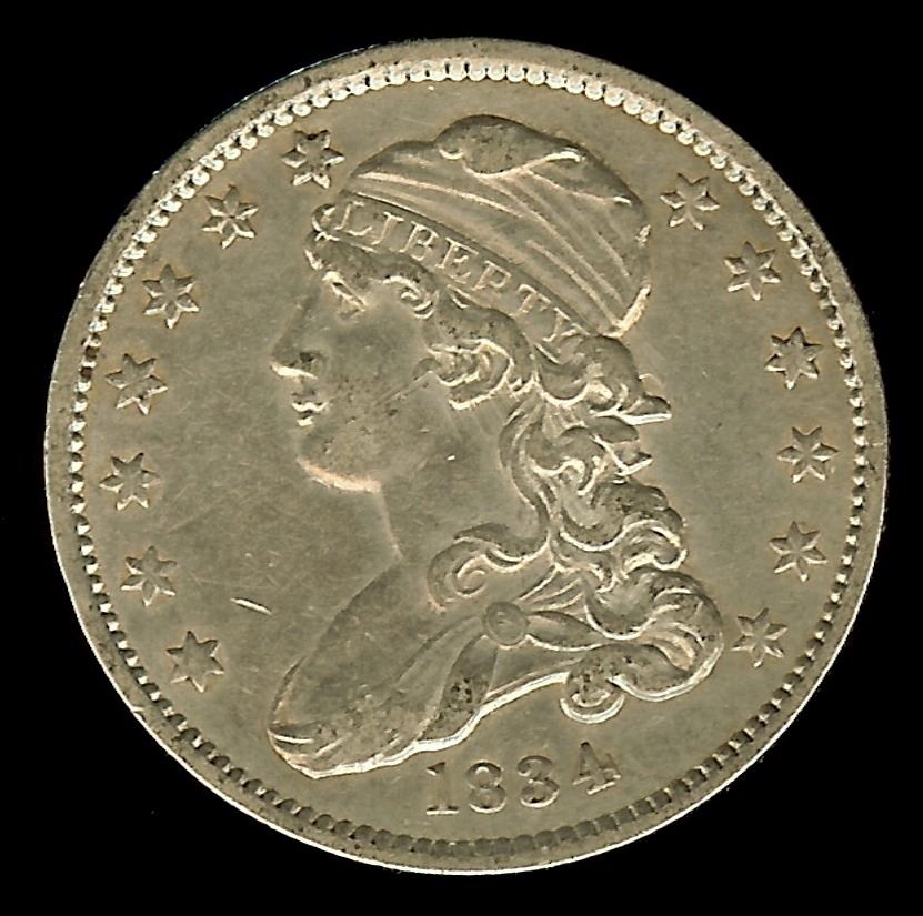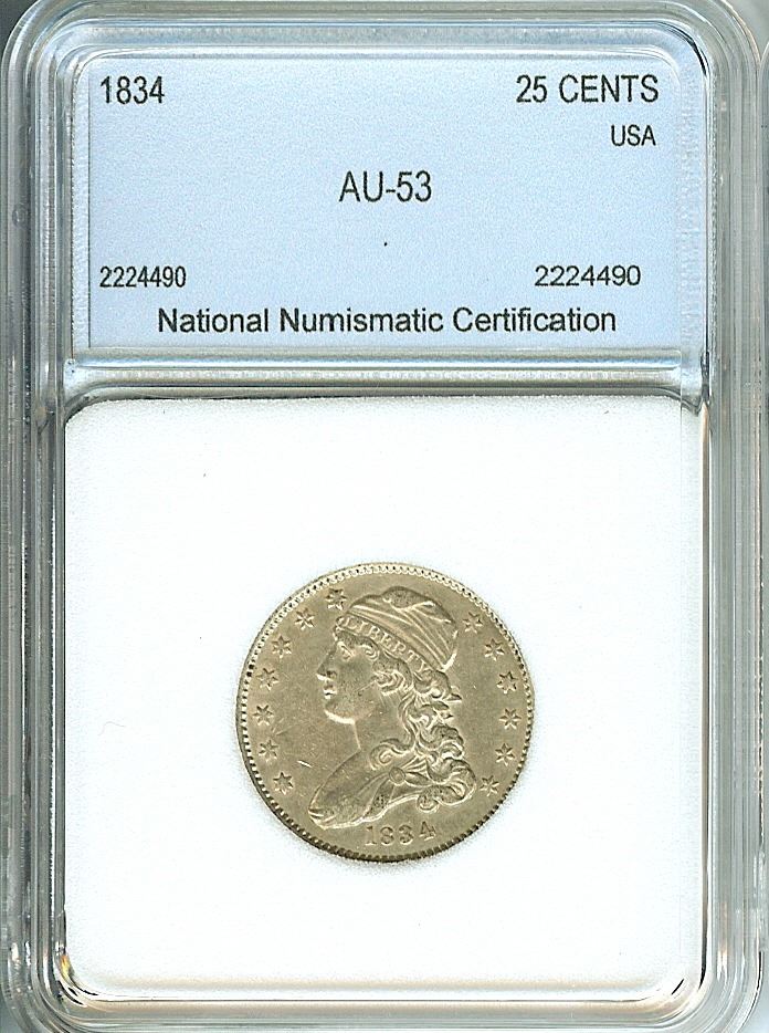 1834 CAPPED BUST SILVER 25 CENTS NNC AU-53