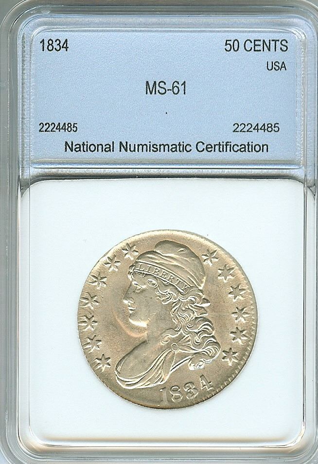 1834 CAPPED BUST SILVER 50 CENTS NNC MS-61