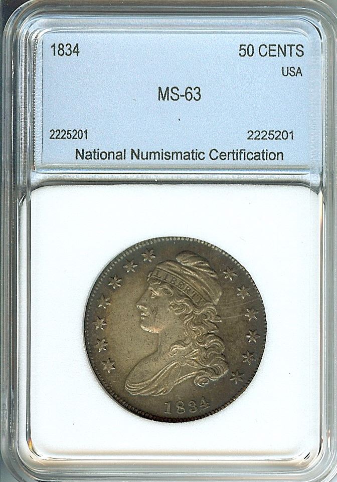 1834 CAPPED BUST SILVER HALF DOLLAR NNS MS63