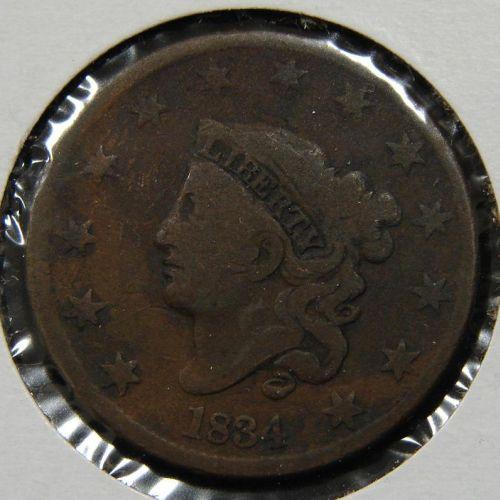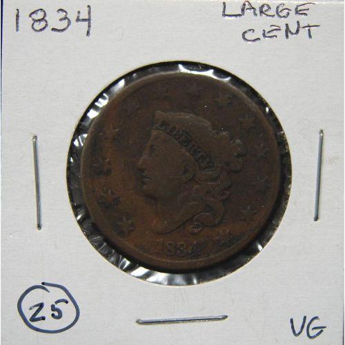1834 U.S. CORONET HEAD LARGE CENT. VG.