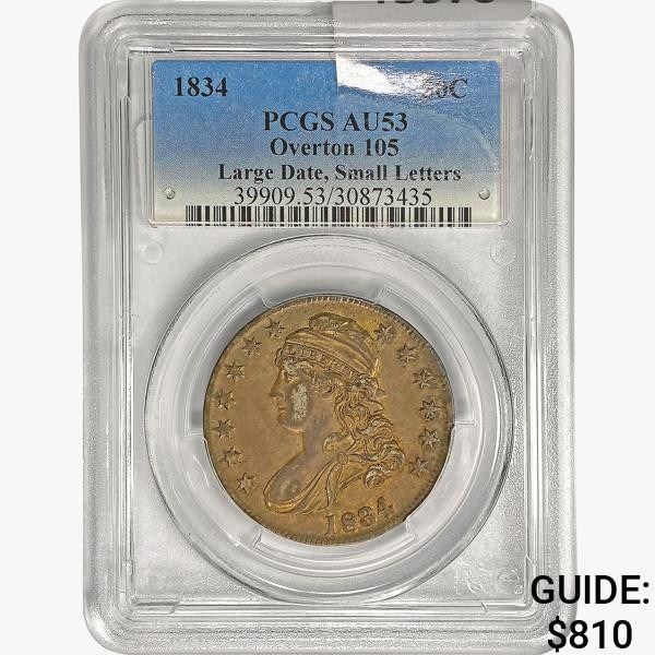 1834 Capped Bust 50C PCGS AU53 Overton 105 Lg. Dat
