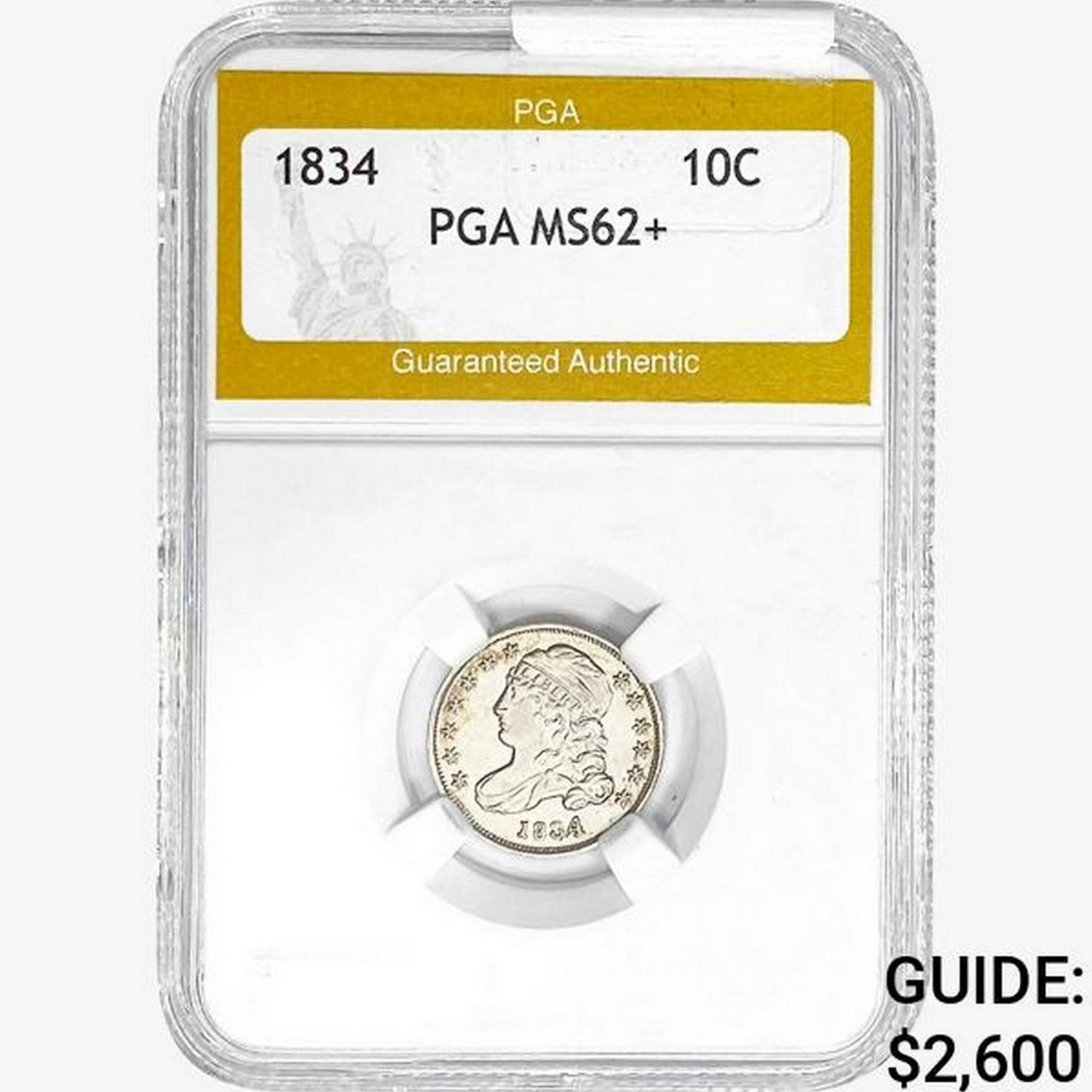 1834 Capped Bust Dime PGA MS62+