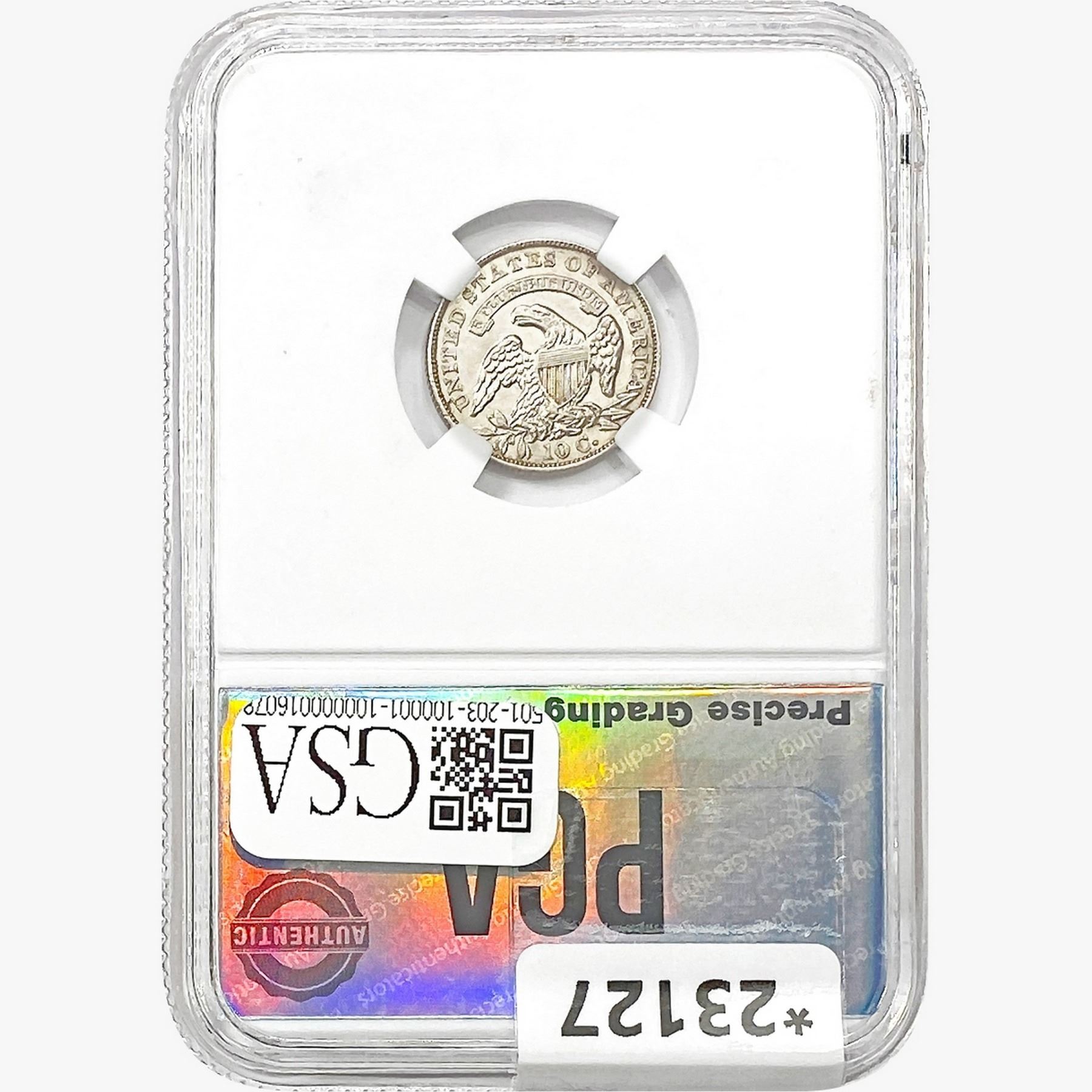 COINS AND CURRENCY LISTED IN GSA’S CATALOG AS GRADED AND ENCAPSULATED BY PCGS, NGC, ANACS, ICG, PCGS CURRENCY, PMG, PCGS BANKNOTE GRADING, CMC OR ANY OTHER THIRD-PARTY GRADING SERVICE ARE LIKEWISE SOLD “AS-IS” EXCEPT AS EXPRESSLY SET FORTH HEREIN. ALL THIRD-PARTY GRADING SERVICE GUARANTEES, INCLUDING AUTHENTICITY, ARE THE SOLE RESPONSIBILITY OF THE THIRD-PARTY GRADING SERVICE AND NOT WARRANTIES OR GUARANTEES OF GSA. BIDDERS SHOULD CONTACT THESE THIRD-PARTY GRADING SERVICES DIRECTLY WITH RESPECT TO ANY CLAIMS OR QUESTIONS THEY MAY HAVE CONCERNING THEIR GUARANTEES AND WARRANTIES. BIDDERS ACKNOWLEDGE AND AGREE THAT AUCTIONEER IS NOT BOUND BY OR LIABLE FOR ANY OPINION OR CERTIFICATION BY ANY THIRD-PARTY GRADING SERVICE. REMOVAL OF A PRODUCT FROM ITS PROTECTIVE CASING OR HOLDER OR ALTERATION OF ANY COIN HOLDER WAIVES ALL RIGHTS CONCERNING THE PRODUCT CONTAINED THEREIN.