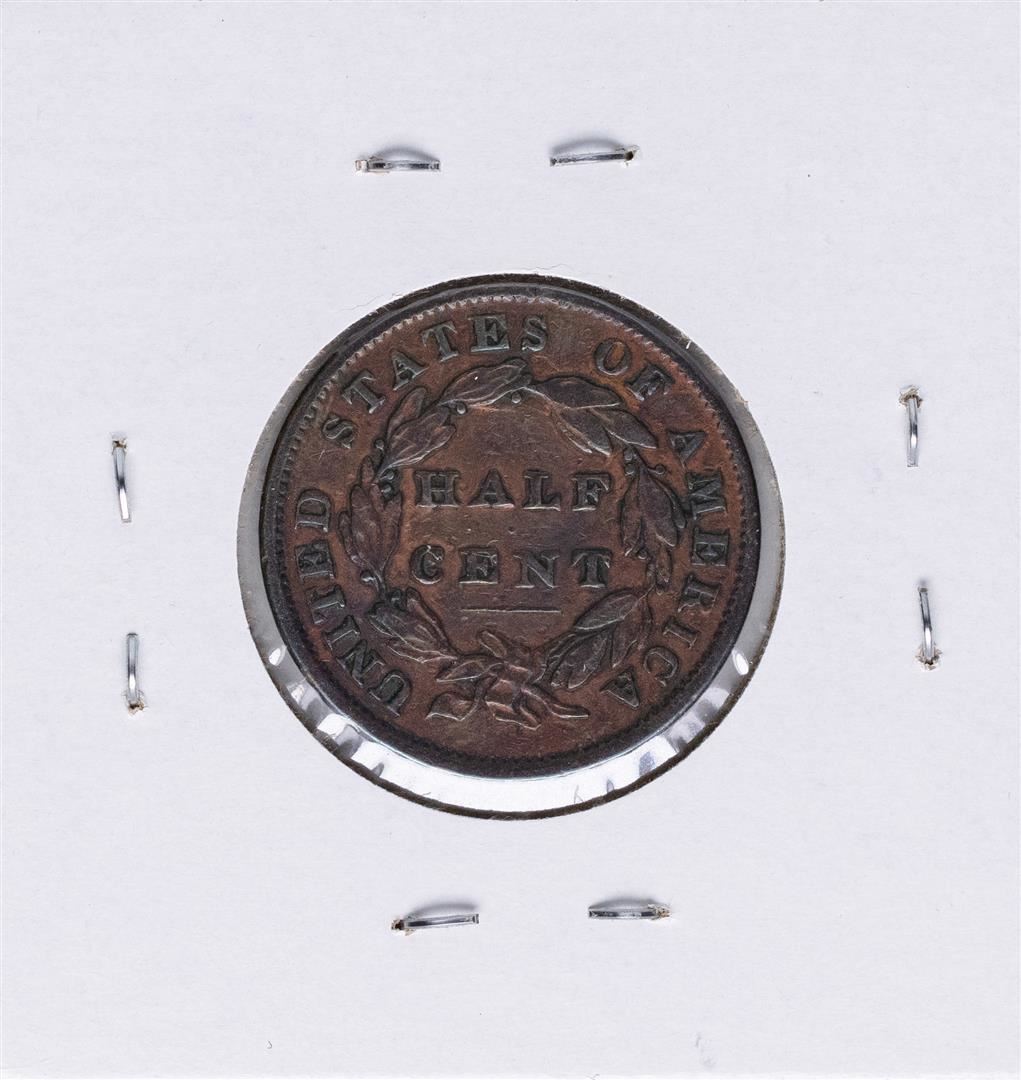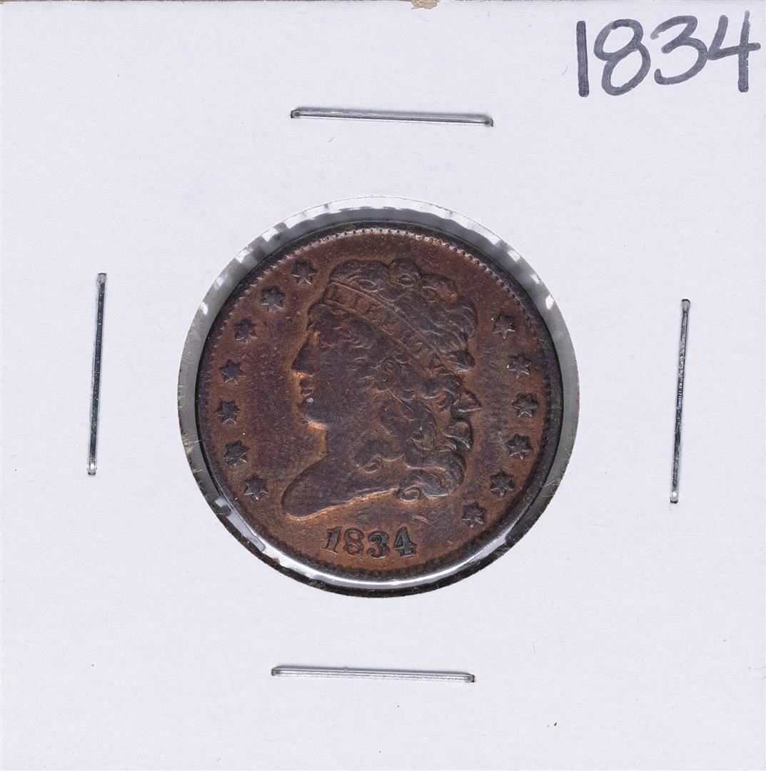 One 1834 Capped Bust Half Cent Coin.