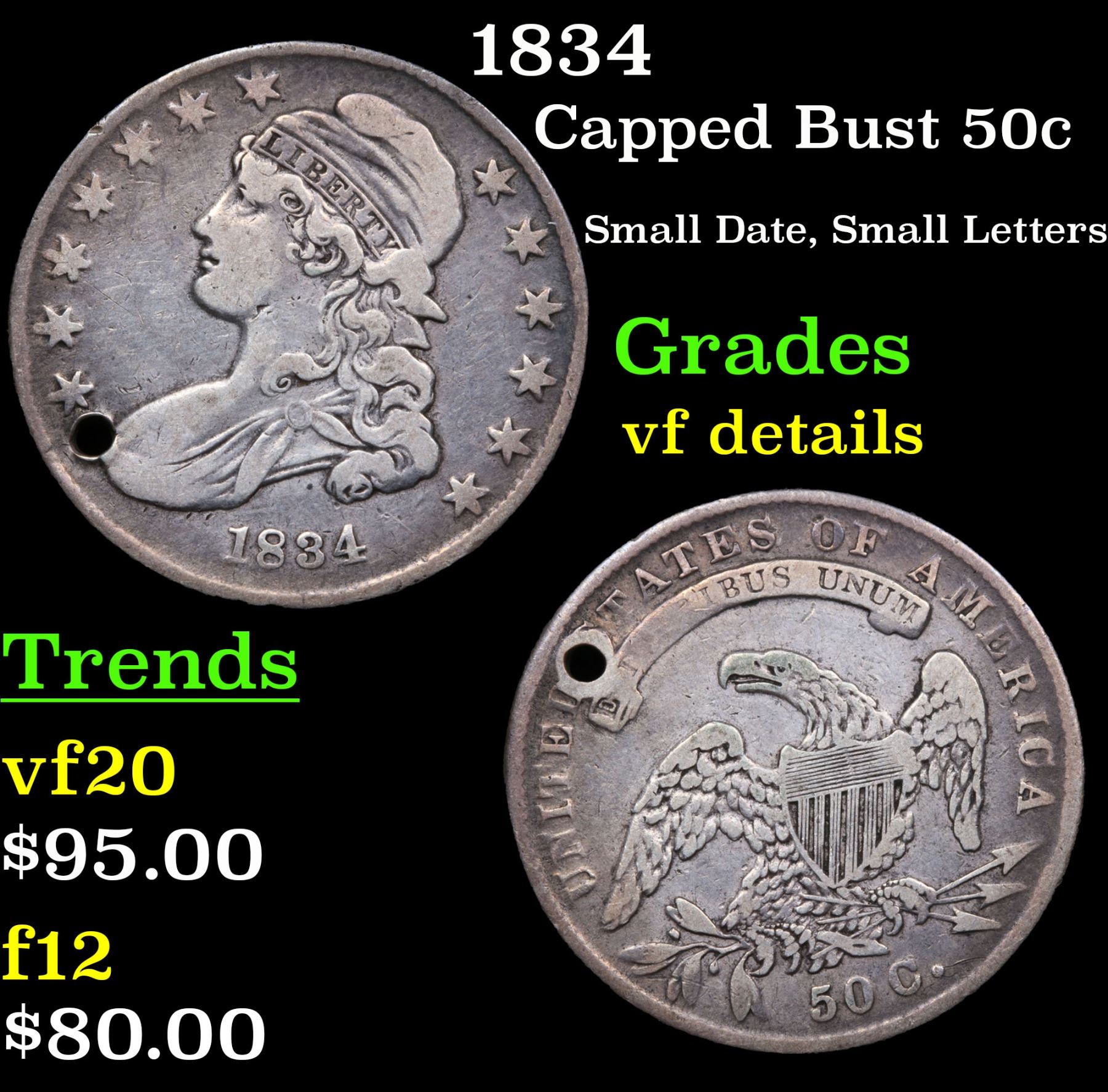 1834 Capped Bust Half Dollar 50c Grades vf details.