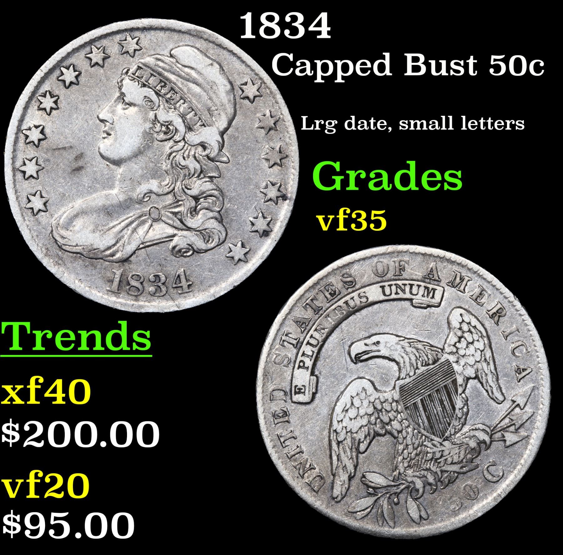 1834 Lrg date, small letters . Capped Bust Half Dollar 50c Grades vf++.