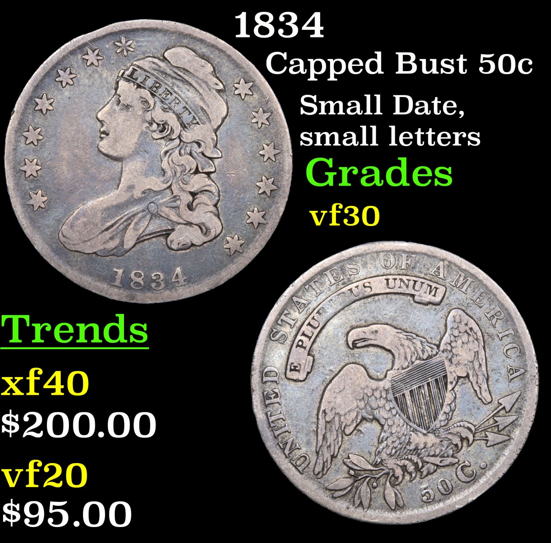 1834 Capped Bust Half Dollar 50c Grades vf++.