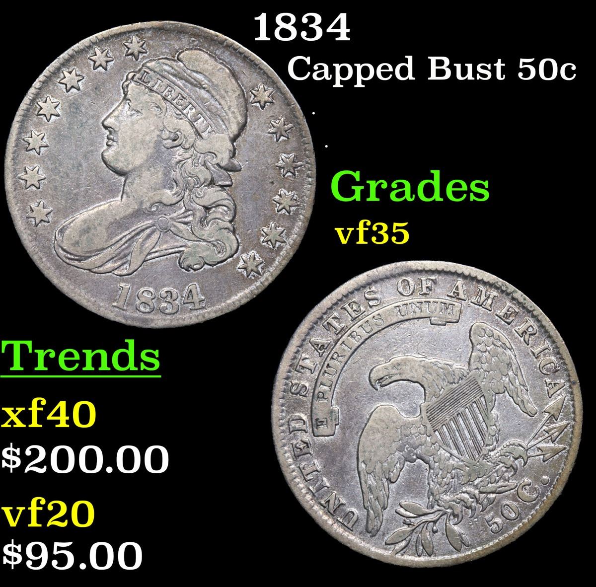 1834 Capped Bust Half Dollar 50c Grades vf++.