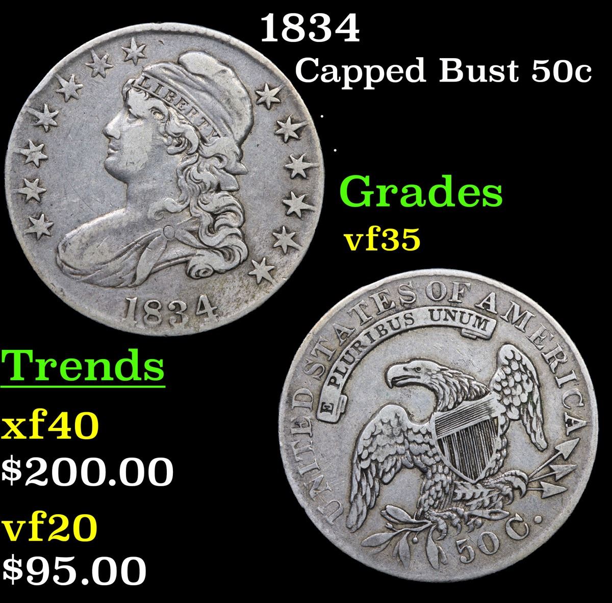 1834 Capped Bust Half Dollar 50c Grades vf++.