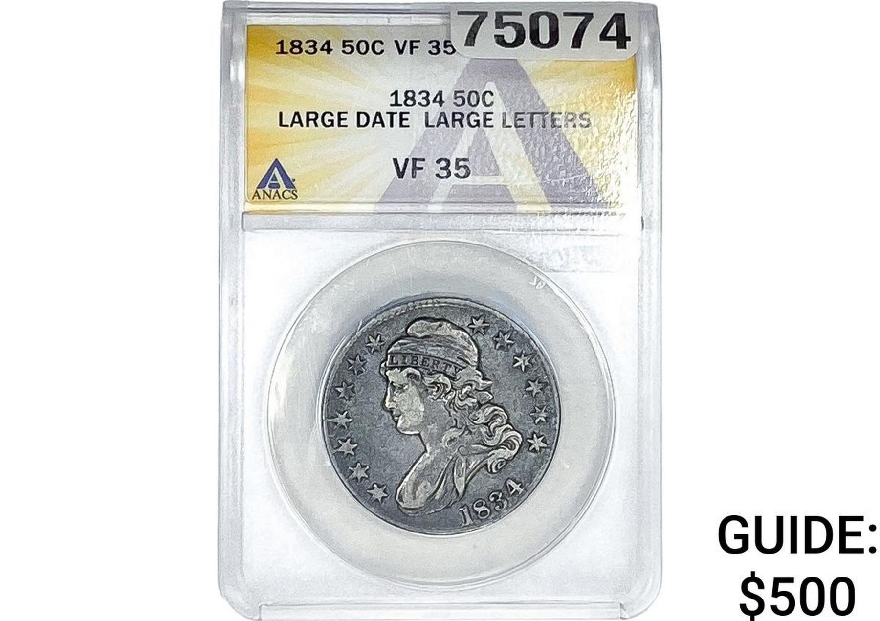 1834 Capped Bust Half Dollar ANACS VF35