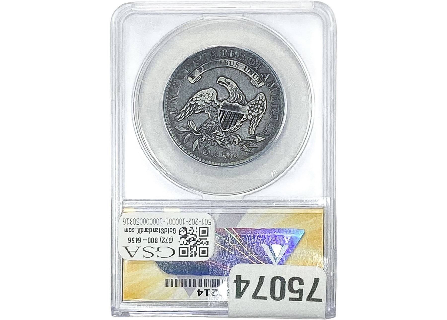 l. All non-certified coins and currency are guaranteed genuine, but are not guaranteed as to grade, since grading is a matter of opinion, an art and not a science, and therefore the description rendered by GSA or any third-party grading service may not agree with the opinion of others (including trained experts), and the same expert may not grade the same item with the same grade at two different times. GSA may, but is not obligated to, express an opinion as to non-certified numismatic items, in GSA’s opinion, or by its employees’ experience and the current interpretation of the American Numismatic Association’s standards as of the date the catalog was prepared. There is no guarantee or warranty expressed or implied that the grading opinions utilized by GSA, if any, will meet the standards of any grading service at any time in the future.