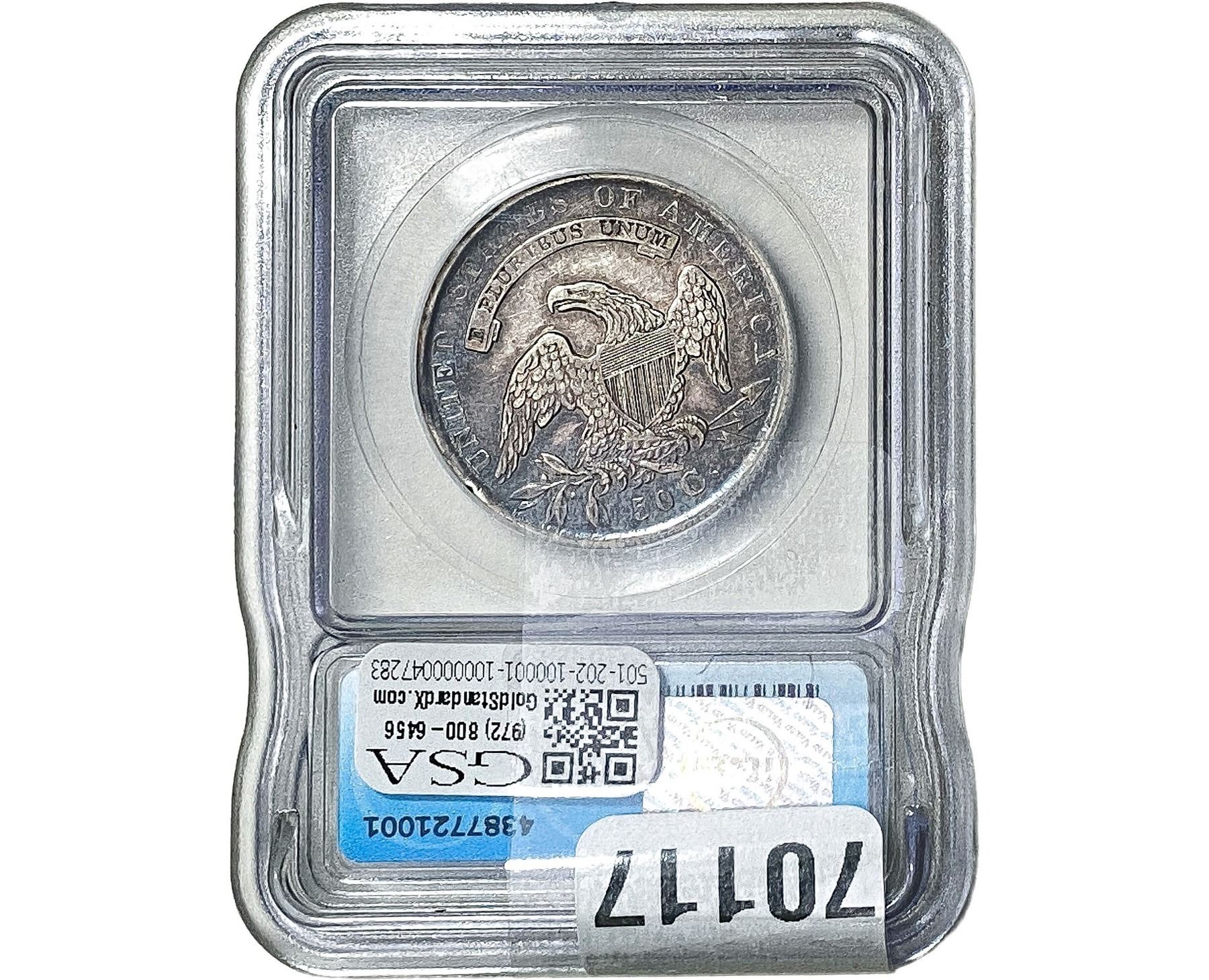 l. All non-certified coins and currency are guaranteed genuine, but are not guaranteed as to grade, since grading is a matter of opinion, an art and not a science, and therefore the description rendered by GSA or any third-party grading service may not agree with the opinion of others (including trained experts), and the same expert may not grade the same item with the same grade at two different times. GSA may, but is not obligated to, express an opinion as to non-certified numismatic items, in GSA’s opinion, or by its employees’ experience and the current interpretation of the American Numismatic Association’s standards as of the date the catalog was prepared. There is no guarantee or warranty expressed or implied that the grading opinions utilized by GSA, if any, will meet the standards of any grading service at any time in the future.