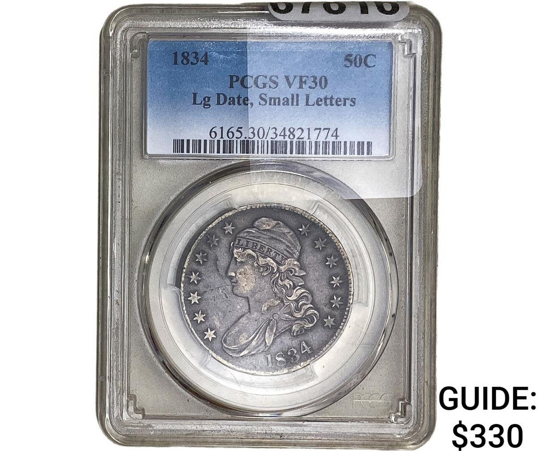 1834 Capped Bust Half Dollar PCGS VF30 LG Date, Small Letters