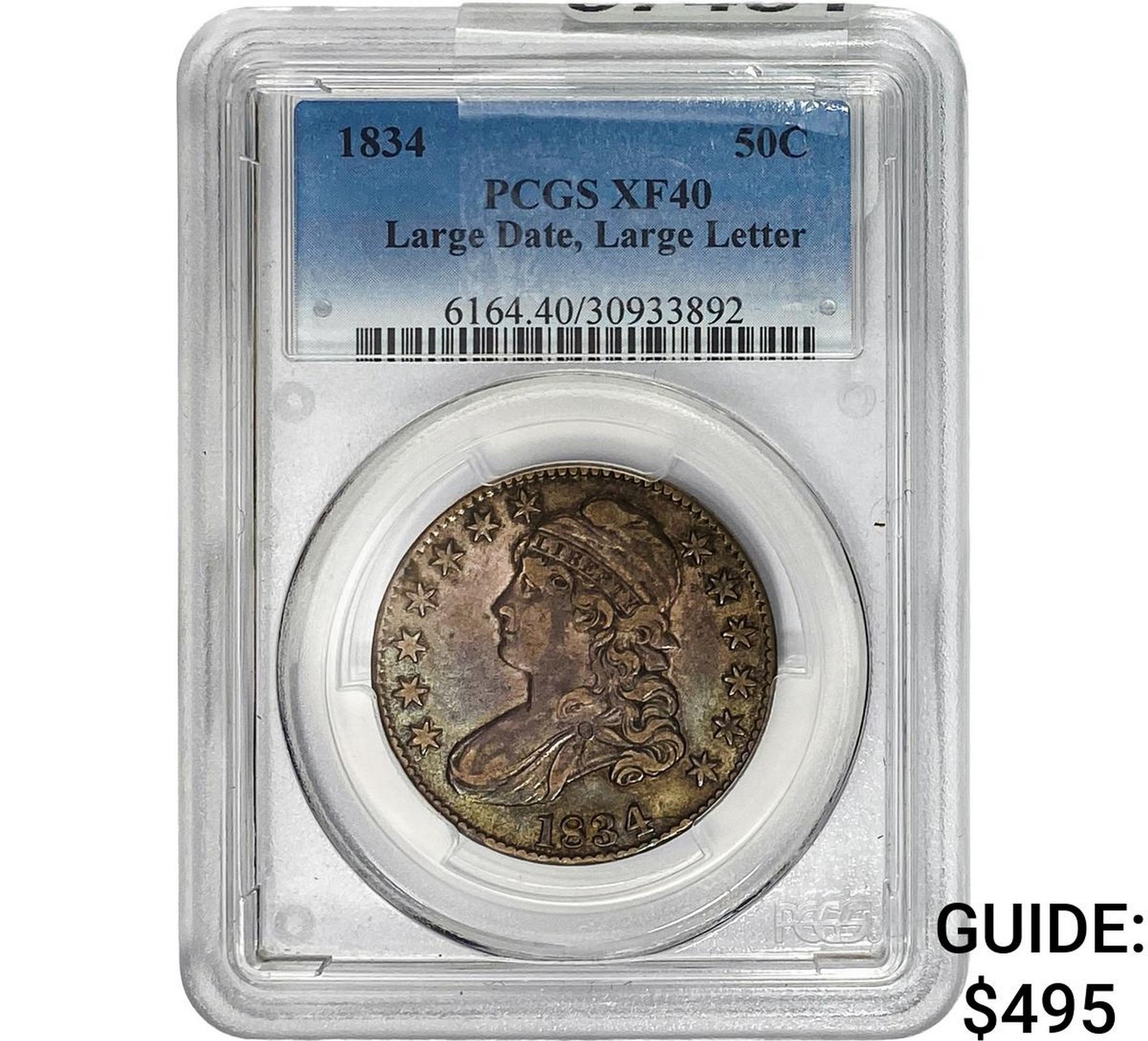 1834 Capped Bust Half Dollar PCGS XF40 LG Date, LG Letter