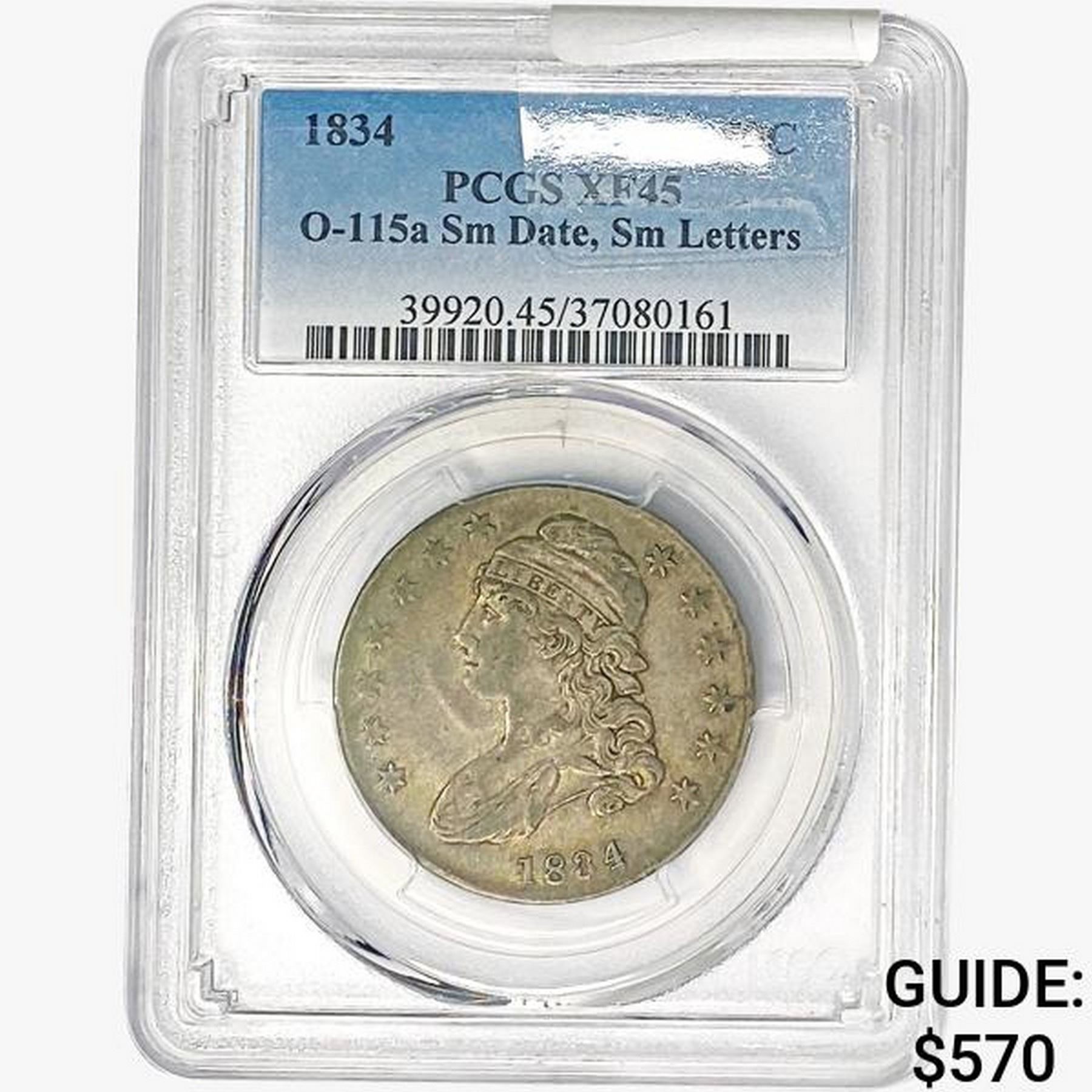 1834 Capped Bust Half Dollar PCGS XF45 Sm. Date, Sm Let.