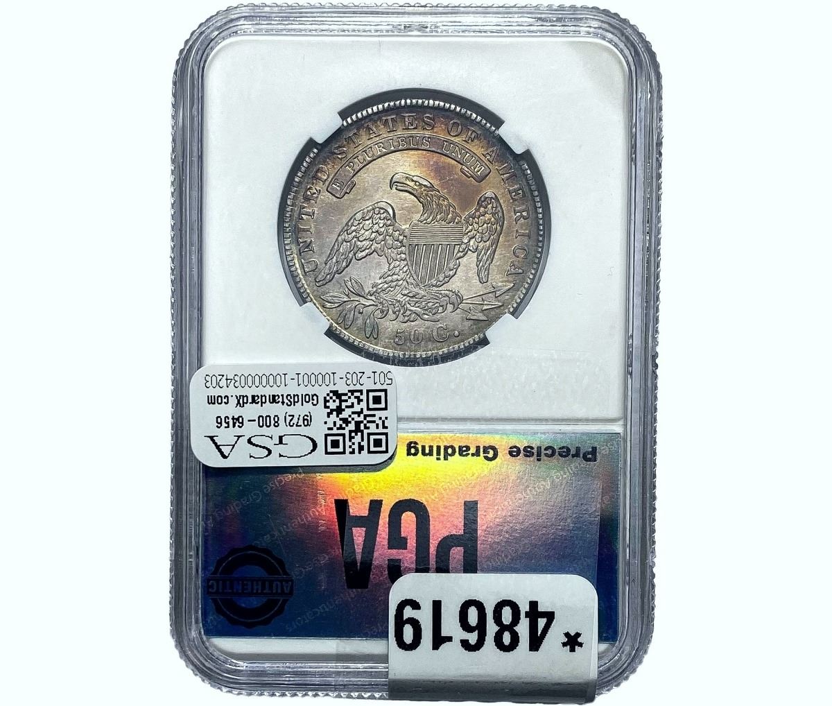 e. Coins sold referencing a third-party grading service are sold “AS IS” without any express or implied warranty, except for a guarantee by GSA that they are genuine. Removal or alteration of the holder, voids all of Bidder’s claims concerning that Product. Certain warranties may be available from the grading services and Bidders are referred to them for further details: Numismatic Guaranty Corporation (NGC), PO Box 4776, Sarasota, FL 34230, www.ngccoin.com/services/writtenguarantee.asp; Professional Coin Grading Services (PCGS), PO Box 9458, Newport Beach, CA 92658, www.pcgs.com/guarantee.html; ANACS, 6555 S. Kenton St., Ste. 303, Englewood, CO 80111; and Independent Coin Grading Co. (ICG), 7901 East Bellview, Ave., Suite 50, Englewood, CO 80111.