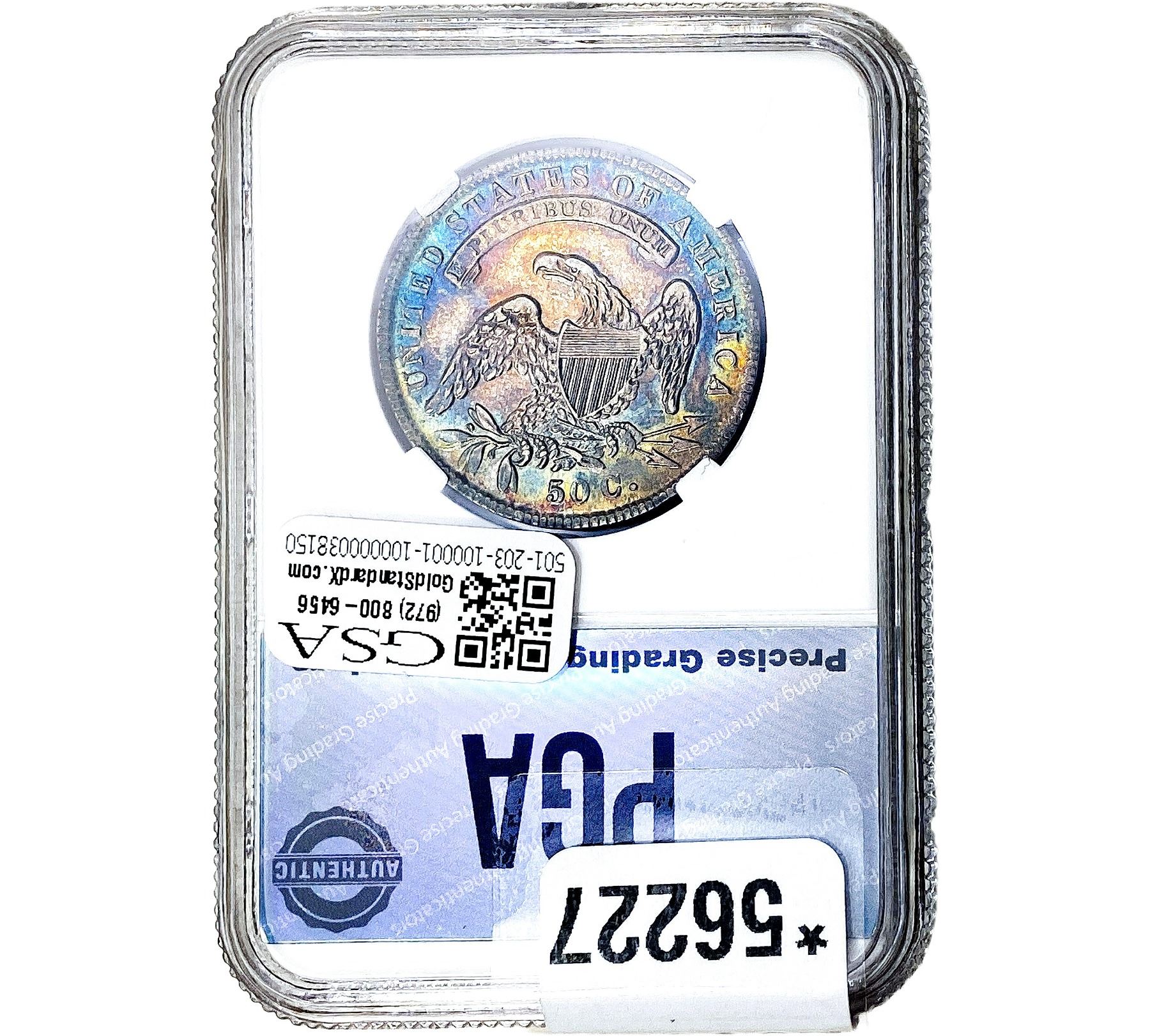 l. All non-certified coins and currency are guaranteed genuine, but are not guaranteed as to grade, since grading is a matter of opinion, an art and not a science, and therefore the description rendered by GSA or any third-party grading service may not agree with the opinion of others (including trained experts), and the same expert may not grade the same item with the same grade at two different times. GSA may, but is not obligated to, express an opinion as to non-certified numismatic items, in GSA’s opinion, or by its employees’ experience and the current interpretation of the American Numismatic Association’s standards as of the date the catalog was prepared. There is no guarantee or warranty expressed or implied that the grading opinions utilized by GSA, if any, will meet the standards of any grading service at any time in the future.